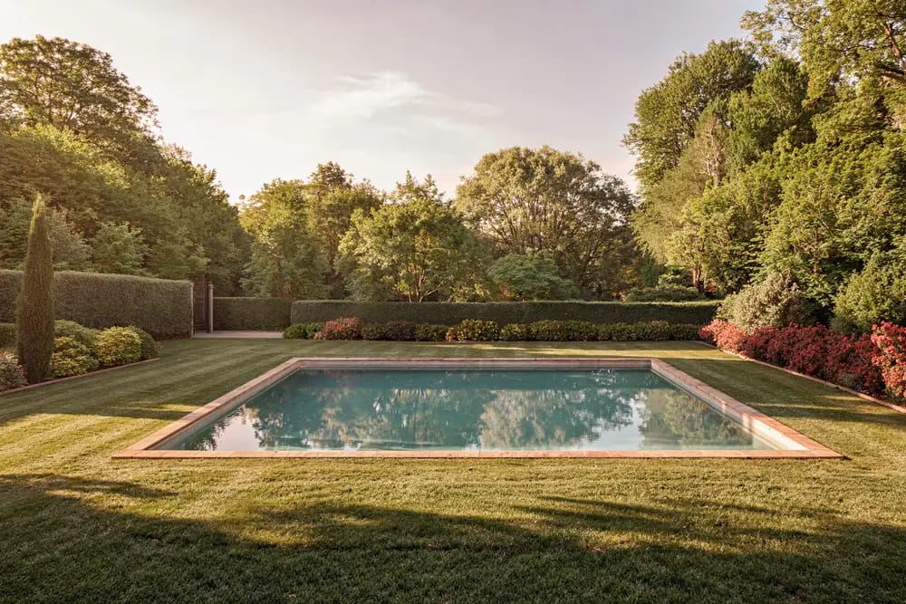 The traditional building that constitutes the main villa is located on a hill overlooking the splendid surrounding countryside and recalls the most classic canons of a Tuscan country residence. Here, the design respects the stylistic features of an Italian villa garden, with the use of typical mediterranean plants and the alternation of panoramic views with greenery that delimit the spaces and enclose them from the eye.