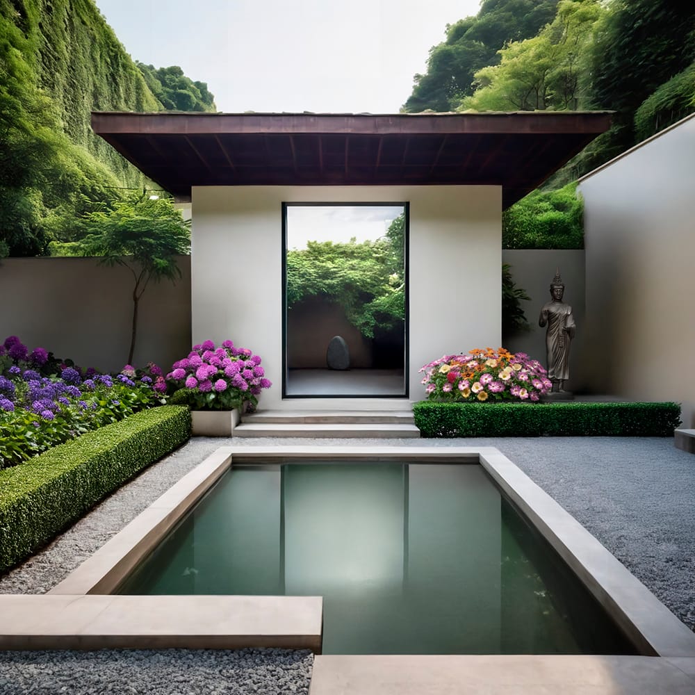 The owners of this intimate garden, coming from Asia, requested the creation of a place with a vaguely oriental atmosphere, which would adapt to the outdoor spaces of the house. The latter are made up of a series of intimate and cozy ‘en plein air rooms’, enclosed by walls plastered in soft colors, which define a series of highly refined environments according to the typical aesthetic canons of the oriental garden.