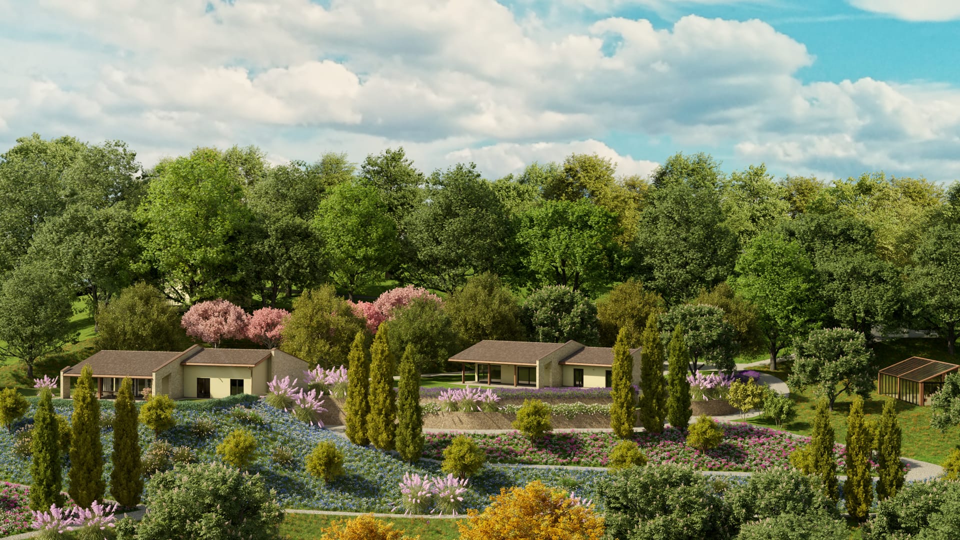 Surfaces with turf will surround the villas to the south, creating green terraces that open onto the landscape. Given the conformation of the land, for the southernmost villa, retaining walls will not be necessary to support the land, but escarpments with slopes of approximately 60% will suffice.