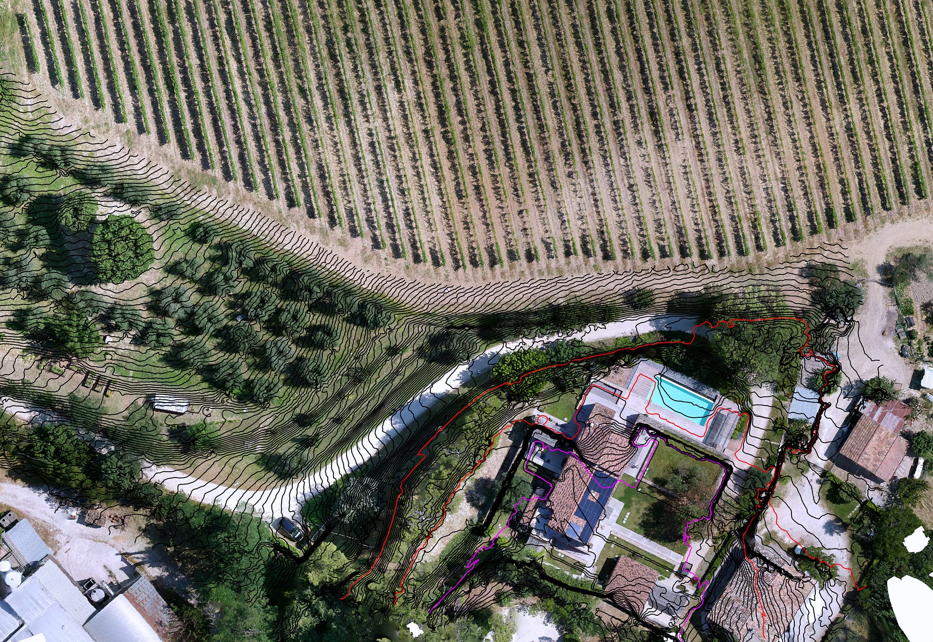 Il metodo più efficace e veloce per poter rilevare una proprietà è dato dal drone, che permette di ottenere una nuvola di punti precisa e dettagliata nell’ordine del centimetro. Il rilievo con drone deve però essere calibrato e corretto mediante la rilevazione di alcuni punti con GPS, utile anche alla registrazione della posizione di alberi e piante già esistenti e che devono essere presi in considerazione quando si progetta il giardino.