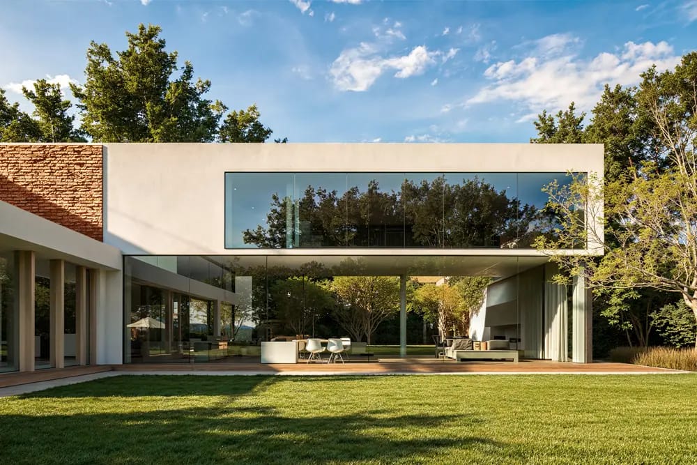 L’architettura sobria ed aperta al dialogo con l’esterno dei piani inferiori, caratterizzata da ampie superfici vetrate, ben si prestava alla creazione di giardini interni che costituissero un’ideale prosecuzione ‘en plein air’ delle zone in cui vengono ricevuti gli ospiti e si tengono incontri di lavoro.