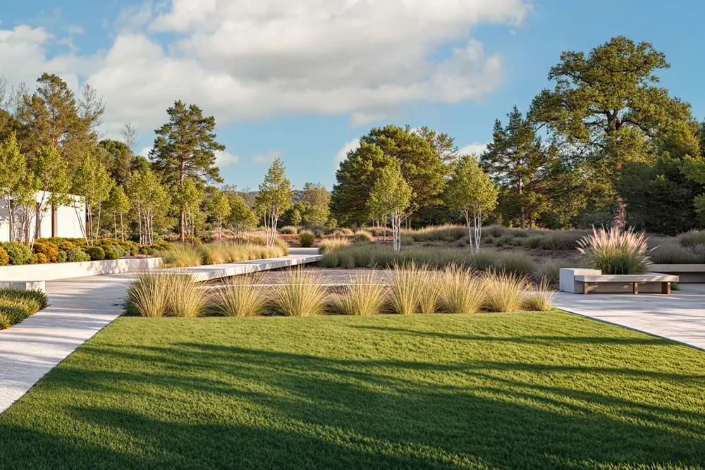 Qui il progetto del paesaggio ha voluto rimarcare il carattere libero ed informale del contesto, dando vita ad un luogo meno attento a precisi canoni estetici e più rilassato.